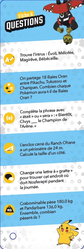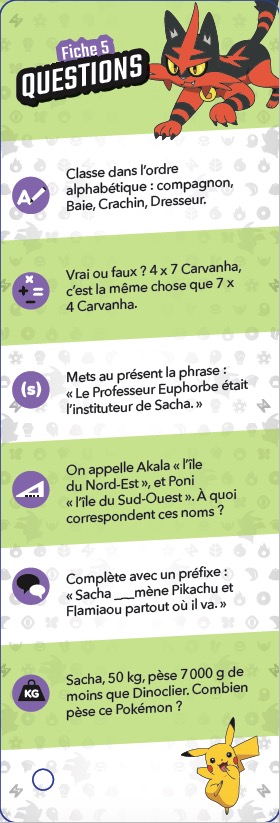 Prépare ta rentrée en CM1 en revoyant les notions essentielles du programme de CM2 dans l’univers Pokémon. Révise le calcul, les grandeurs et les mesures, la géométrie, le vocabulaire et l’orthographe. 250 quiz à emporter partout, des pages de jeux pour faire des pauses ludiques et des quiz « spéciaux » pour « challenger » tes parents. © 2020 The Pokémon Company International, Nintendo®.