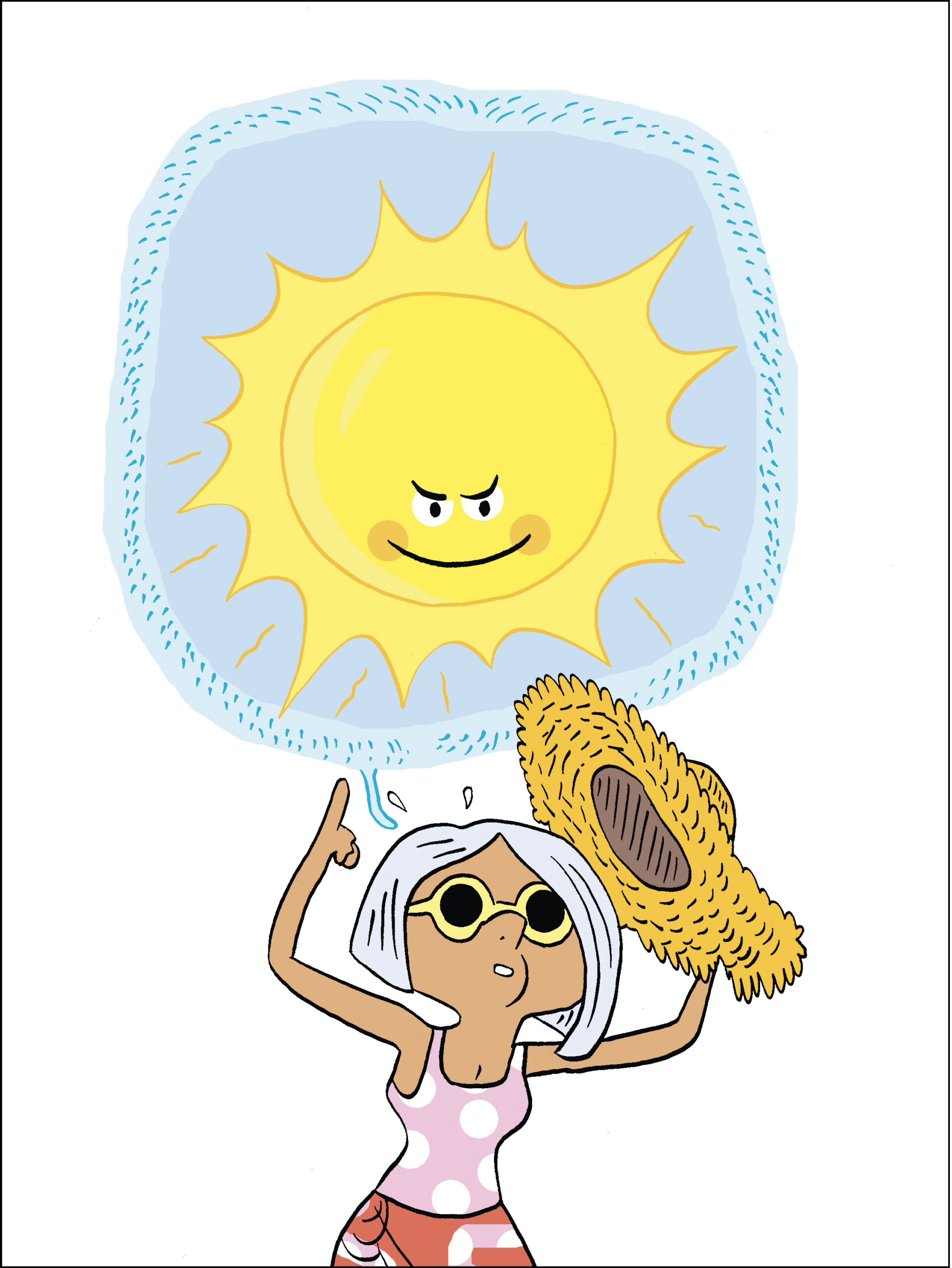 Mais avant de pouvoir faire la course jusqu’à la mer, il faut mettre de la crème solaire ! Les deux amis se demandent :