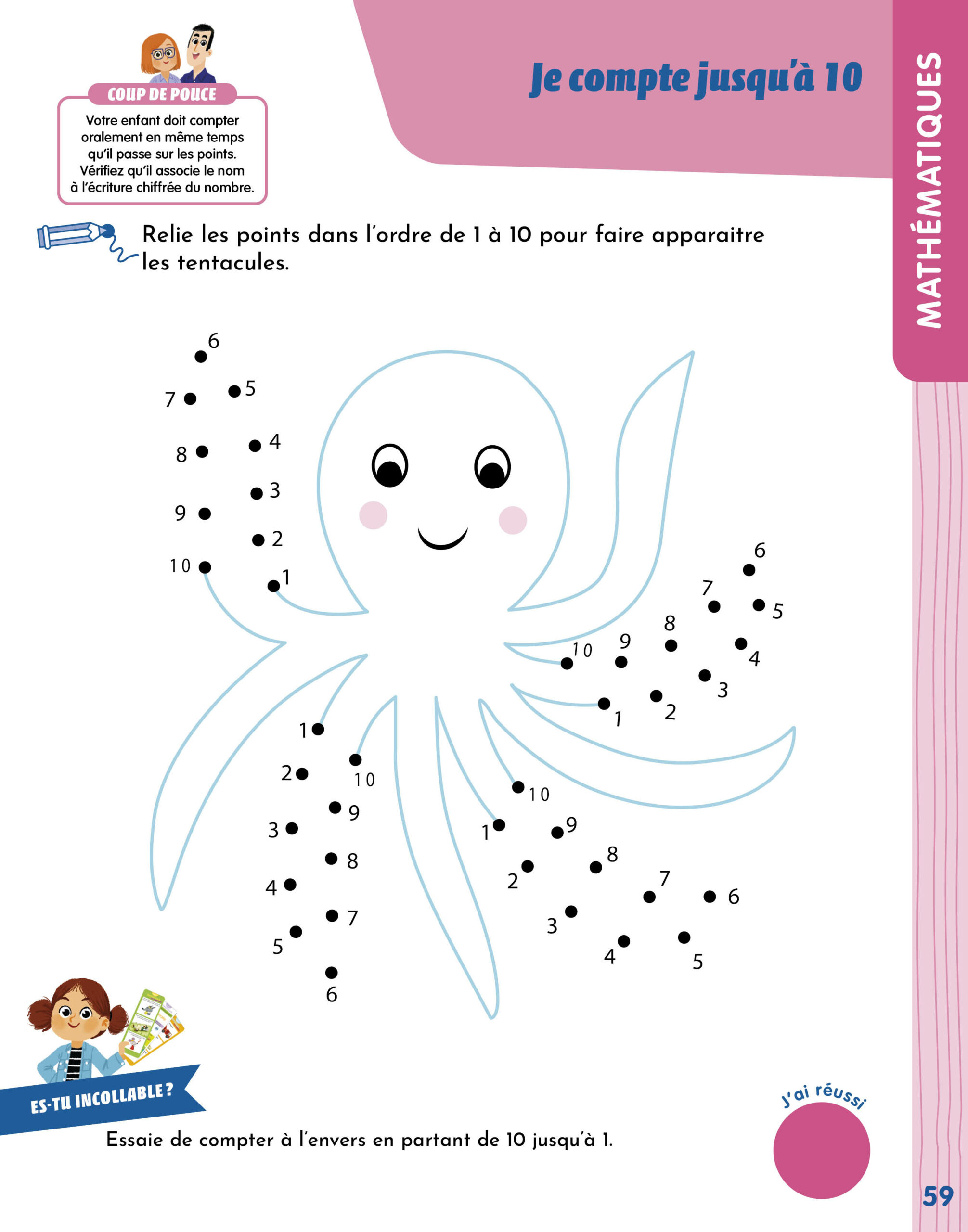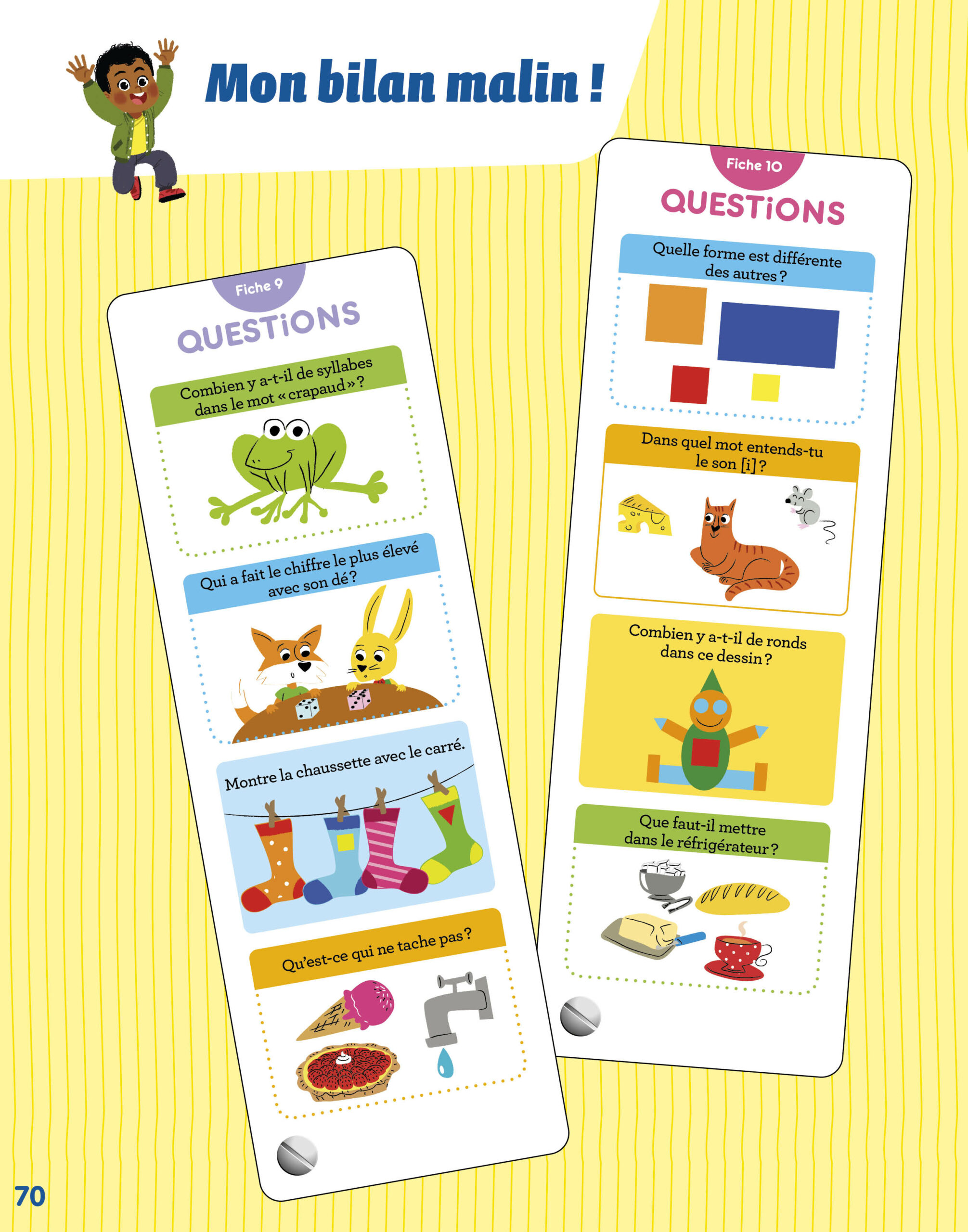 Votre enfant est encouragé grâce aux gommettes de réussite à coller à chaque activité réussie et des pages de bilan malin permettent de vérifier que les apprentissages ont bien été acquis.