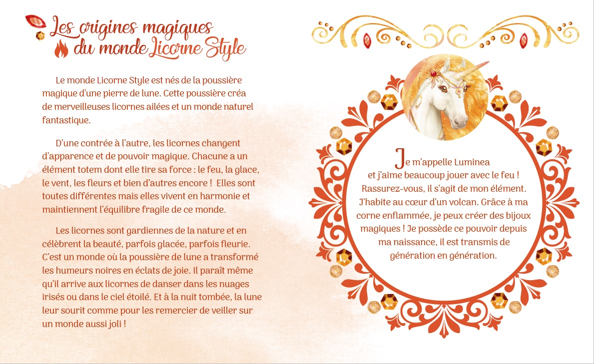 Plonge dans l’univers de Luminea, la licorne de feu, et amuse-toi avec elle ! Cette pochette contient : – 3 cartes à gratter scintillantes ; – 3 activités licorne : DIY, coloriage et carte spéciale ; – 1 livret pour découvrir le monde de Luminea et jouer avec ton code licorne ; – 1 pique pailletée en forme de licorne. Collectionne aussi tes autres cartes Licorne Style : Irisea la licorne arc-en-ciel, Névéa la licorne des glaces ou Florea la licorne des fleurs.