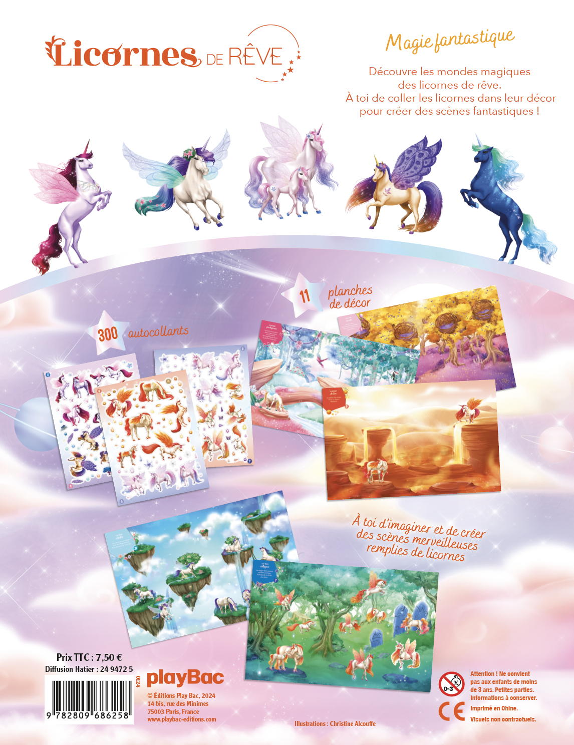 Un cahier avec plus de 300 autocollants de Licornes et 11 décors féériques pour créer des tableaux magiques. L'enfant part à la découverte des mondes merveilleux des licornes fantastiques et crée des scènes sorties de son imagination.