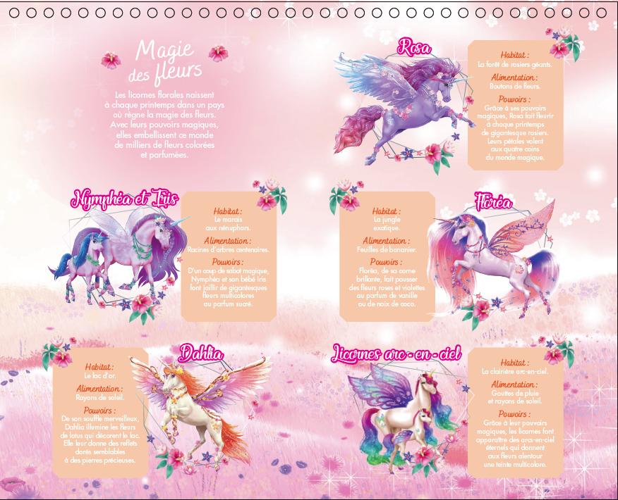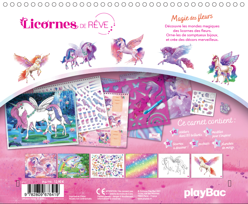Découvre les mondes magiques des licornes des fleurs ! Orne-les de somptueux bijoux et crée des décors merveilleux. Ce carnet contient : – 542 stickers dont 80 brillants ; – 5 modèles pour t’inspirer ; – 4 planches de motifs à découper ; – 32 pochoirs ; – 35 licornes à dessiner et scènes à compléter. Avec la présentation des différentes licornes des fleurs et leurs pouvoirs.