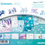 Un grand carnet créatif avec plus de 500 autocollants de Licornes, des pages de dessins, des coloriages, des pochoirs, des planches de motifs, des jeux et des modèles pour s'inspirer. L'enfant part à la découverte des mondes magiques des licornes des neiges, les habille de somptueux bijoux, et crée des décors merveilleux.