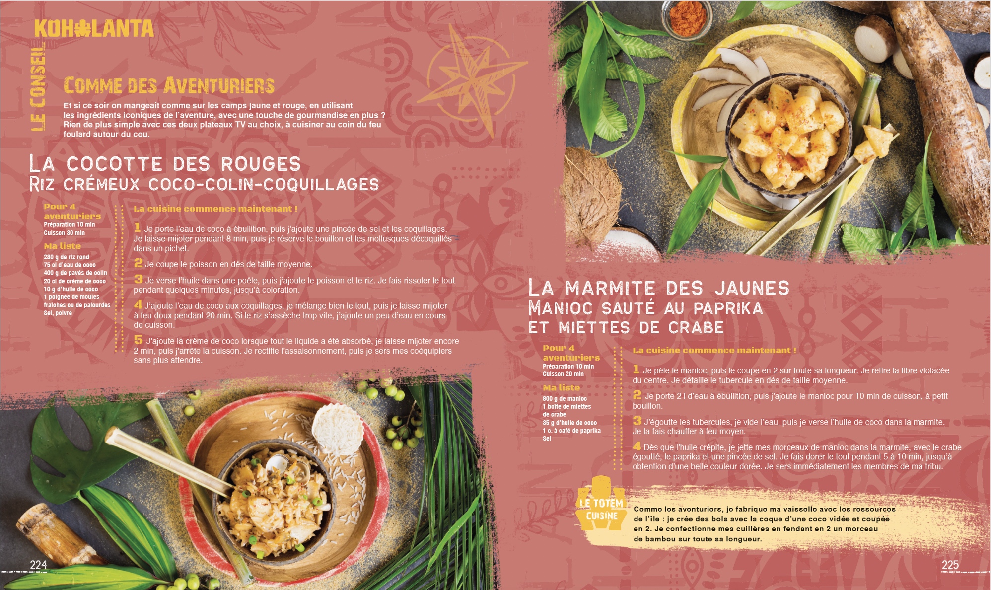 Plus qu’un livre de cuisine, plus qu’un livre d’aventures, ce livre est un appel à l’évasion culinaire autour des 4 continents pour revivre les moments forts de Koh-Lanta. Découvrez de nombreuses recettes sucrées, salées et des boissons au rythme des aventures et des lieux mythiques de Koh-Lanta. Tentez de remporter l’épreuve de confort et le totem en concoctant des mets délicats et exotiques, sans oublier d’utiliser vos armes secrètes. Top, c’est parti ! L’aventure commence maintenant !