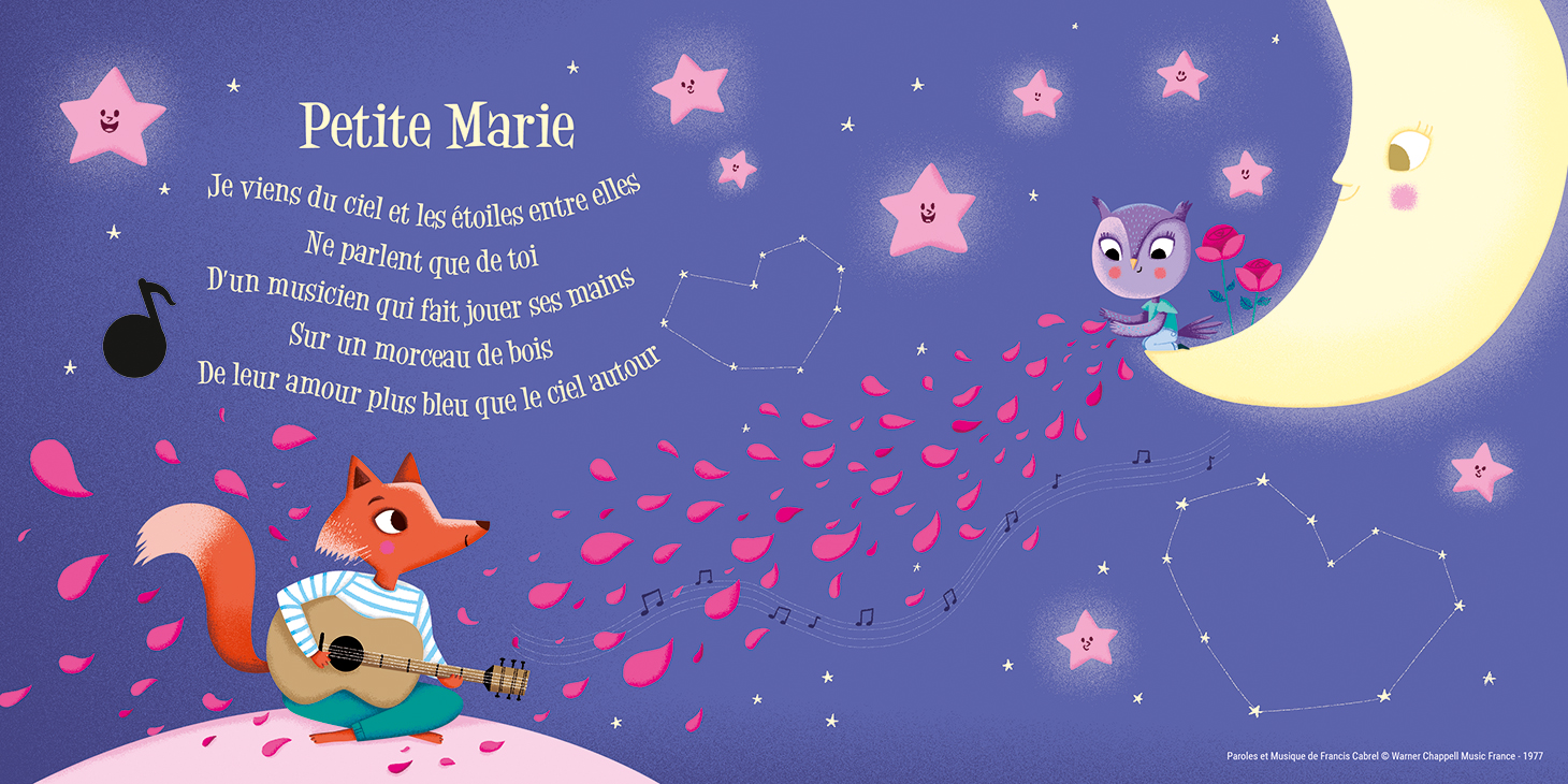 Avec ce livre sonore, l'enfant découvre les classiques de Francis Cabrel. Il s'amuse à chercher la puce dans une scène tendre et colorée, et appuie dessus pour lancer la musique tout seul.