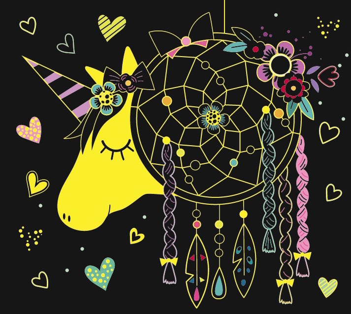 Gratte et dévoile les zones phosphorescentes pour créer tes attrape-rêves licornes !