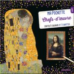 Gratte et dévoile les zones noires pour découvrir les grands chefs-d’oeuvre de la peinture ! Cette pochette contient : – 5 cartes à gratter : La Joconde de Léonard de Vinci, Portrait de Dora Maar de Picasso, Le Baiser de Klimt, Le Bassin aux nymphéas de Monet et les Tournesols de Van Gogh ; – 5 coloriages accompagnés d’une explication du tableau ; – 1 pique en bois pour gratter finement ou plus largement.