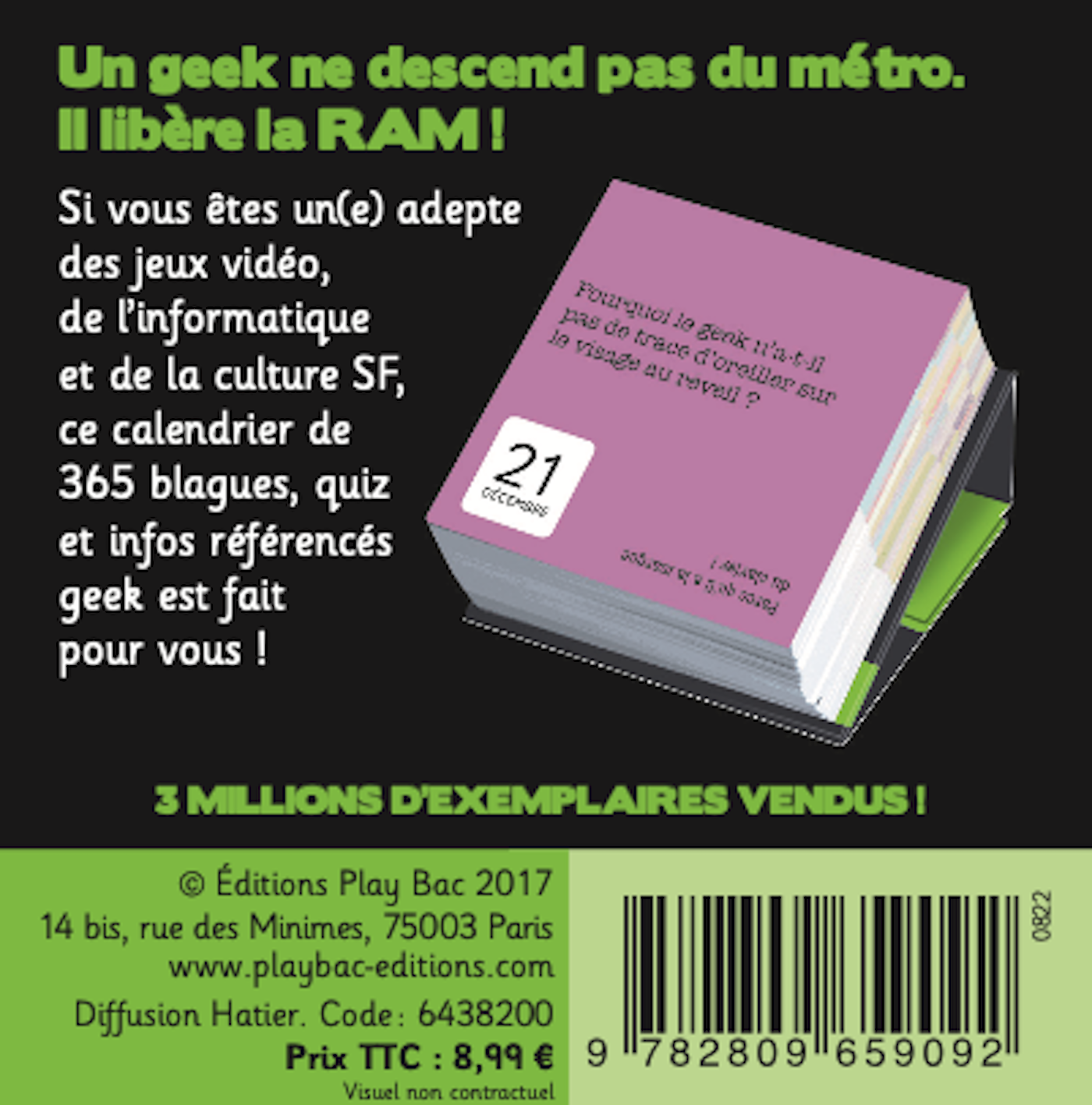 Si vous êtes un(e) adepte des jeux vidéo, de l’informatique et de la culture SF, ce mini calendrier de 365 blagues, quiz et infos référencés geek est fait pour vous !