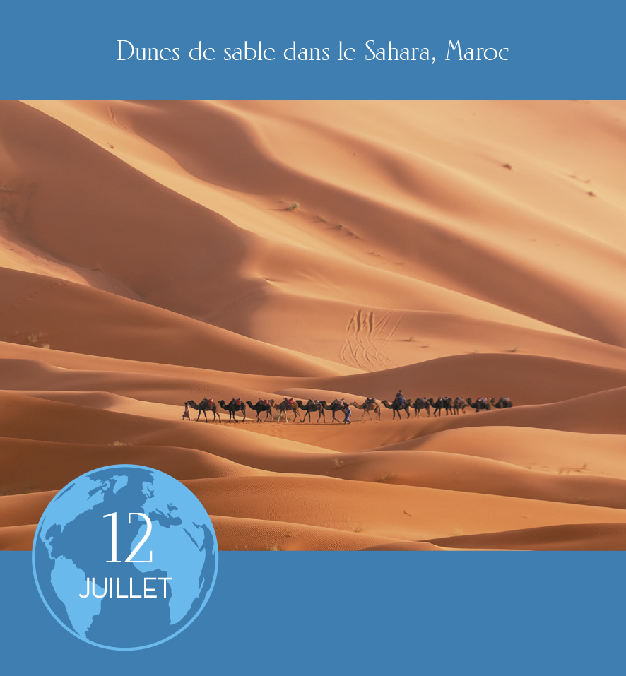 Au programme, photos, anecdotes, quiz et citations qui vous feront voyager depuis les eaux bleues des Maldives jusqu’aux dunes de Namibie tout en passant par les plus beaux monuments et paysages des quatre coins du globe.