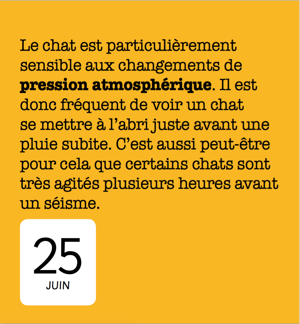 Quiz, citations ou infos insolites, un thème évident pour vivre toute l’année sa passion des chats.