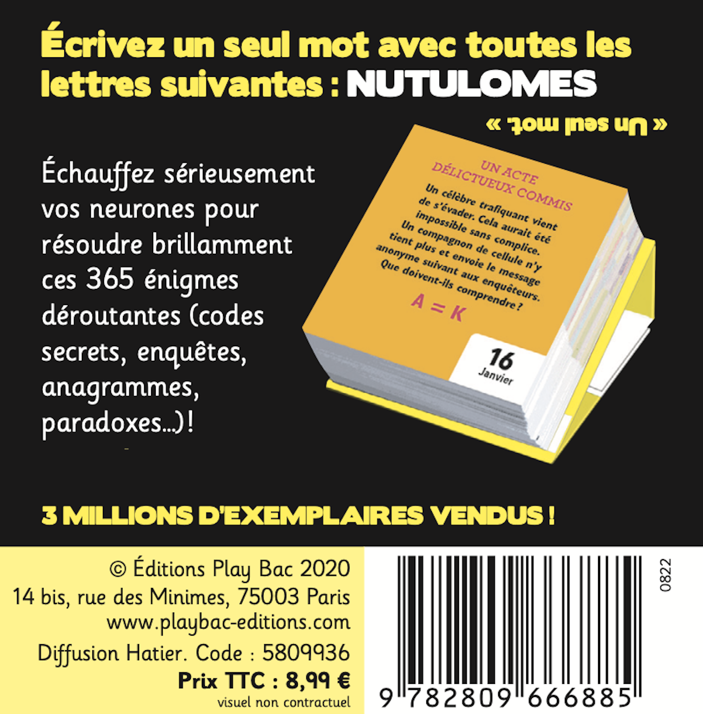 Devinettes, suites logiques, rébus… autant d'énigmes à résoudre pendant 365 jours. Le mini calendrier pour muscler votre cerveau tout au long de l'année.