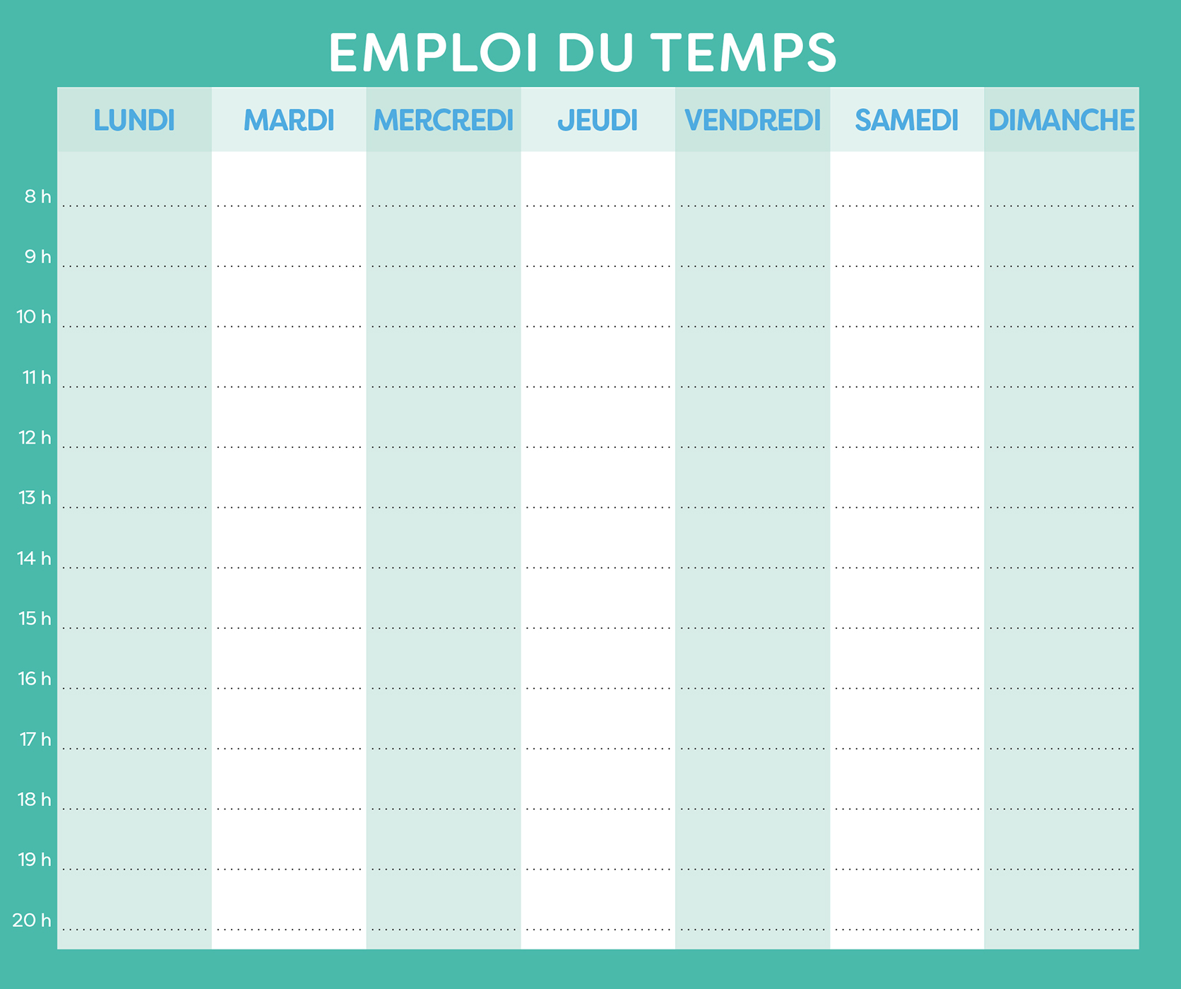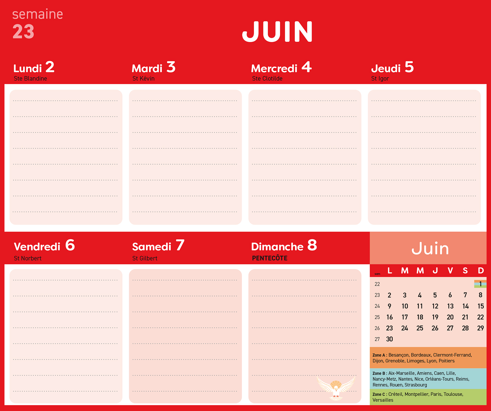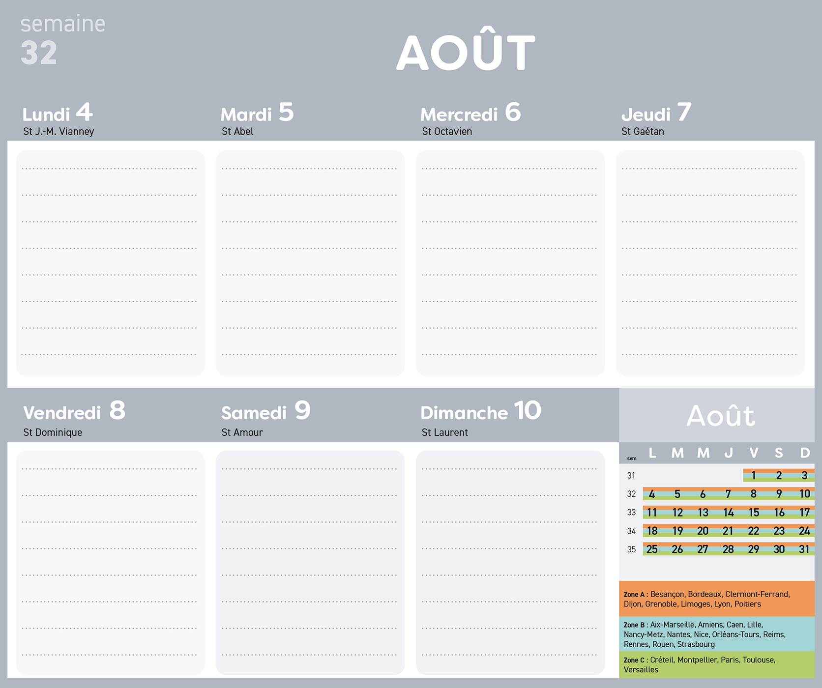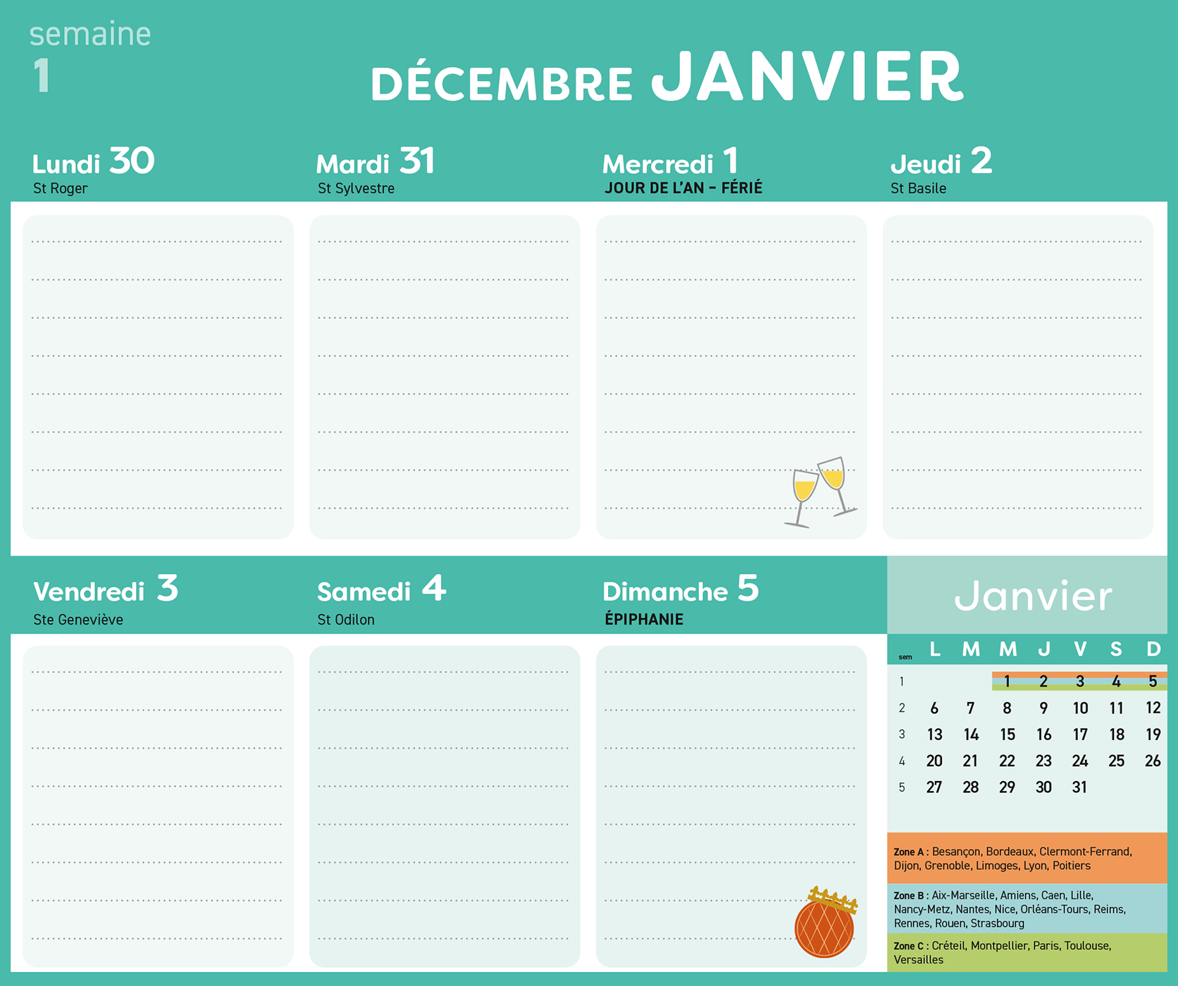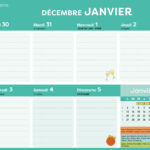 – 1 planning d’organisation par semaine avec les dates officielles des vacances scolaires
