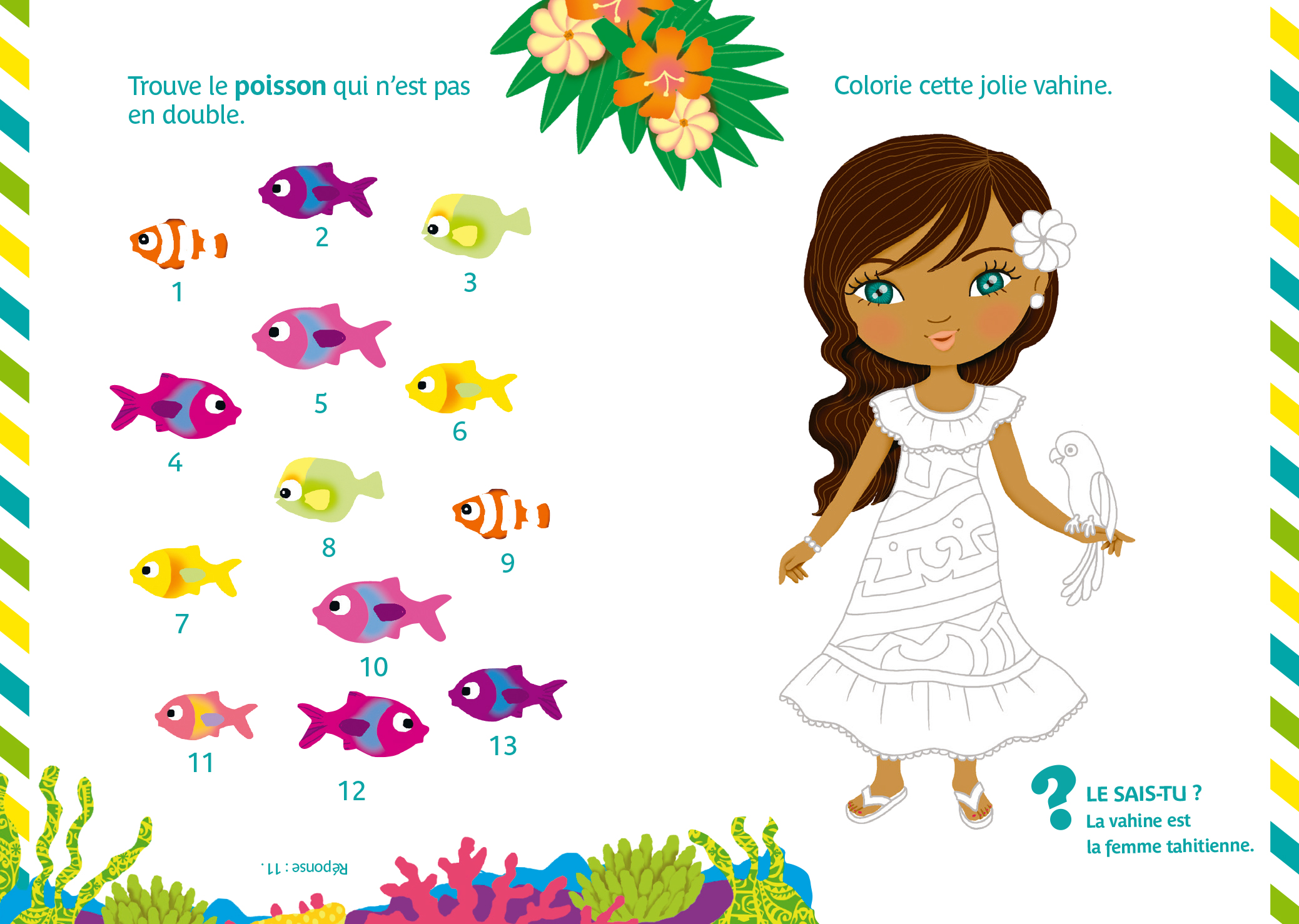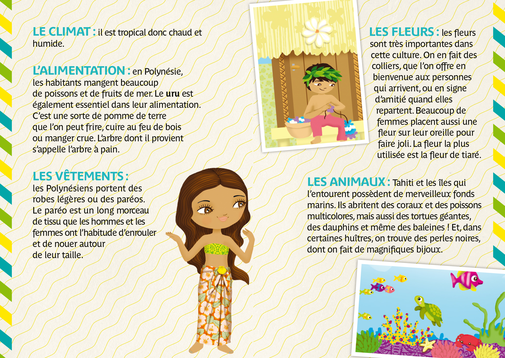 Pour compléter l’activité, l’enfant découvre Tahiti grâce à un livret-passeport contenant des informations documentaires, des jeux et des coloriages.