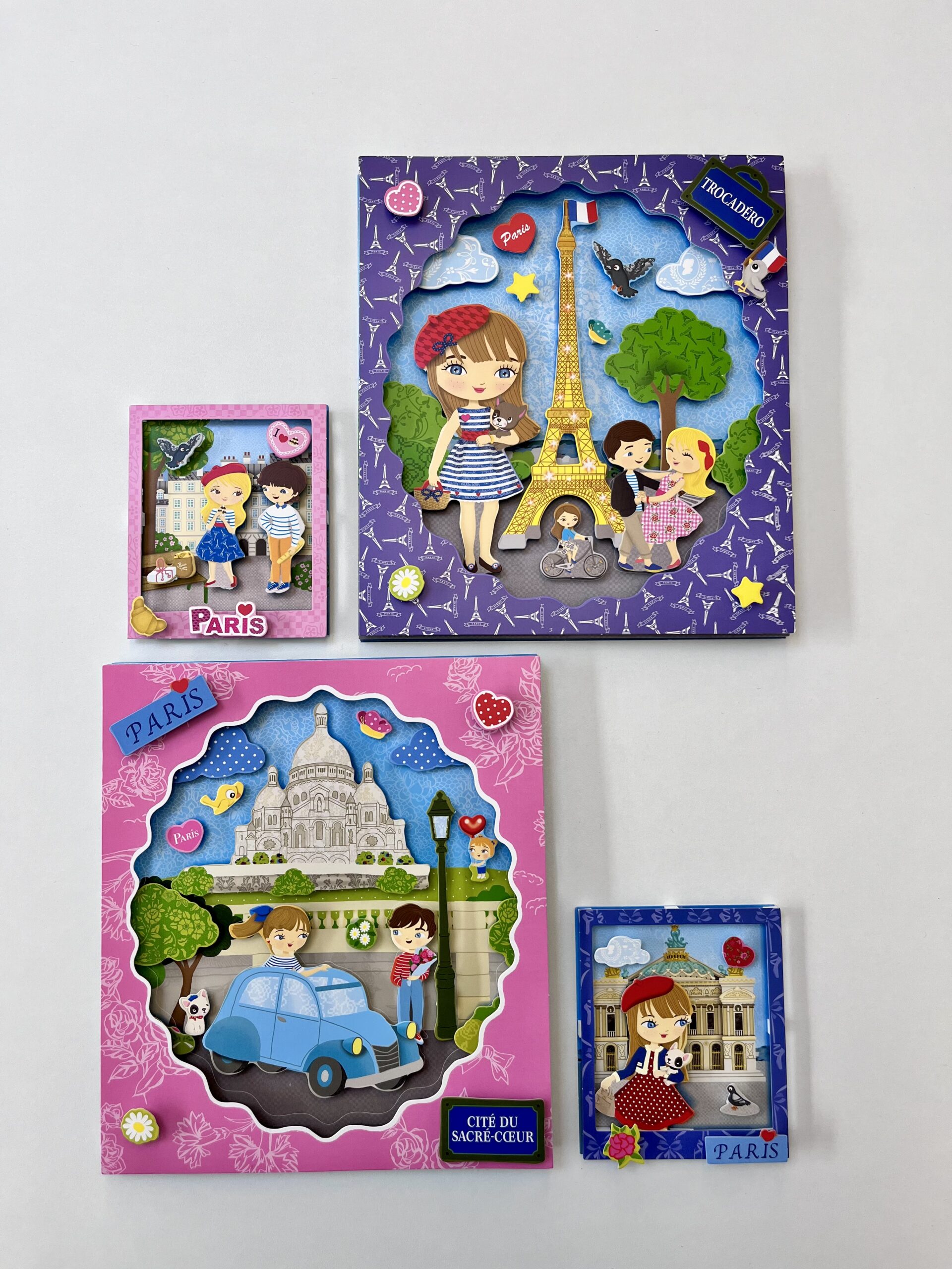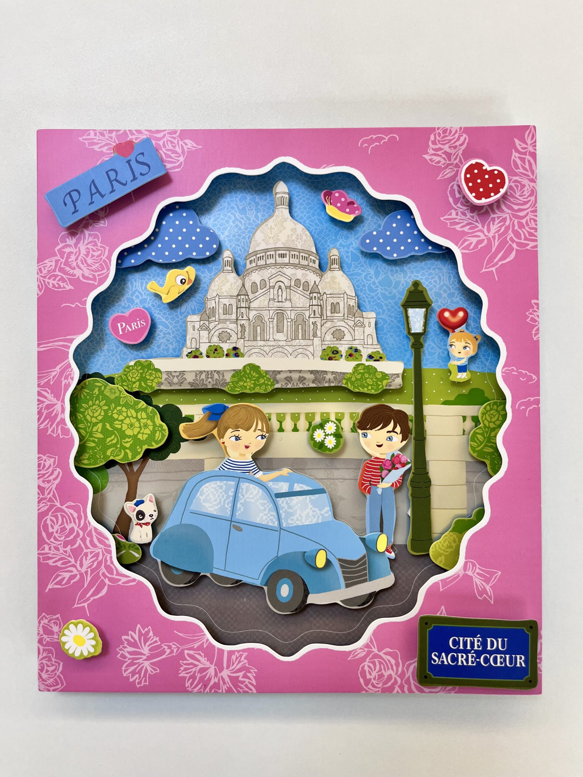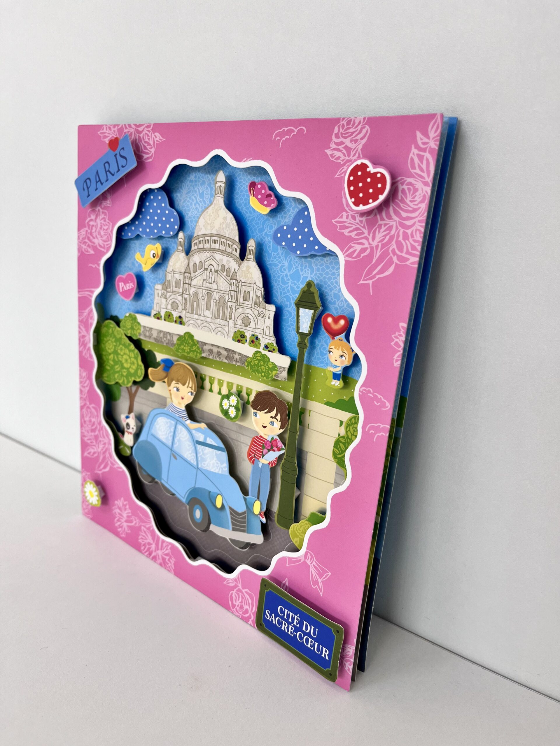 Avec cette pochette, l’enfant met en scène la vie d’Emma à Paris grâce à de magnifiques théâtres en relief ! 4 tableaux à créer en assemblant des éléments en carton pré-découpés avec de petits carrés de mousse autocollante.