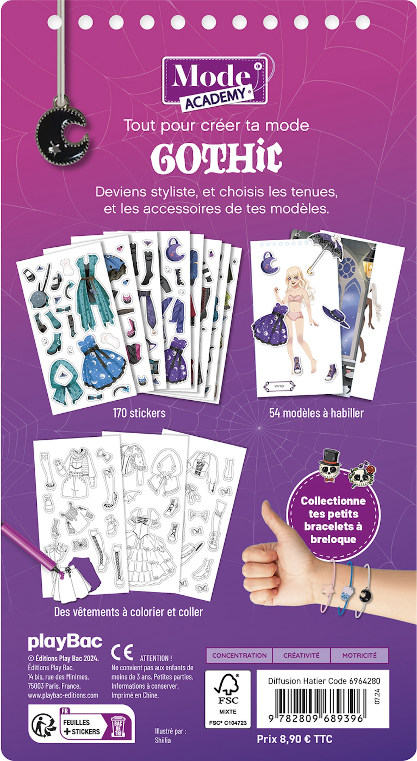 À l’intérieur, 180 stickers, 54 pages de modèles à habiller, des vêtements à colorier et à personnaliser pour développer sa créativité et sa dextérité en toute autonomie.