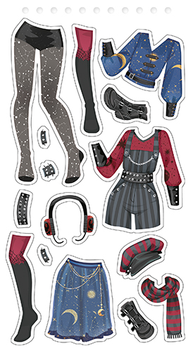 Avec ce carnet, l’enfant devient styliste et choisit les tenues et les accessoires des modèles.