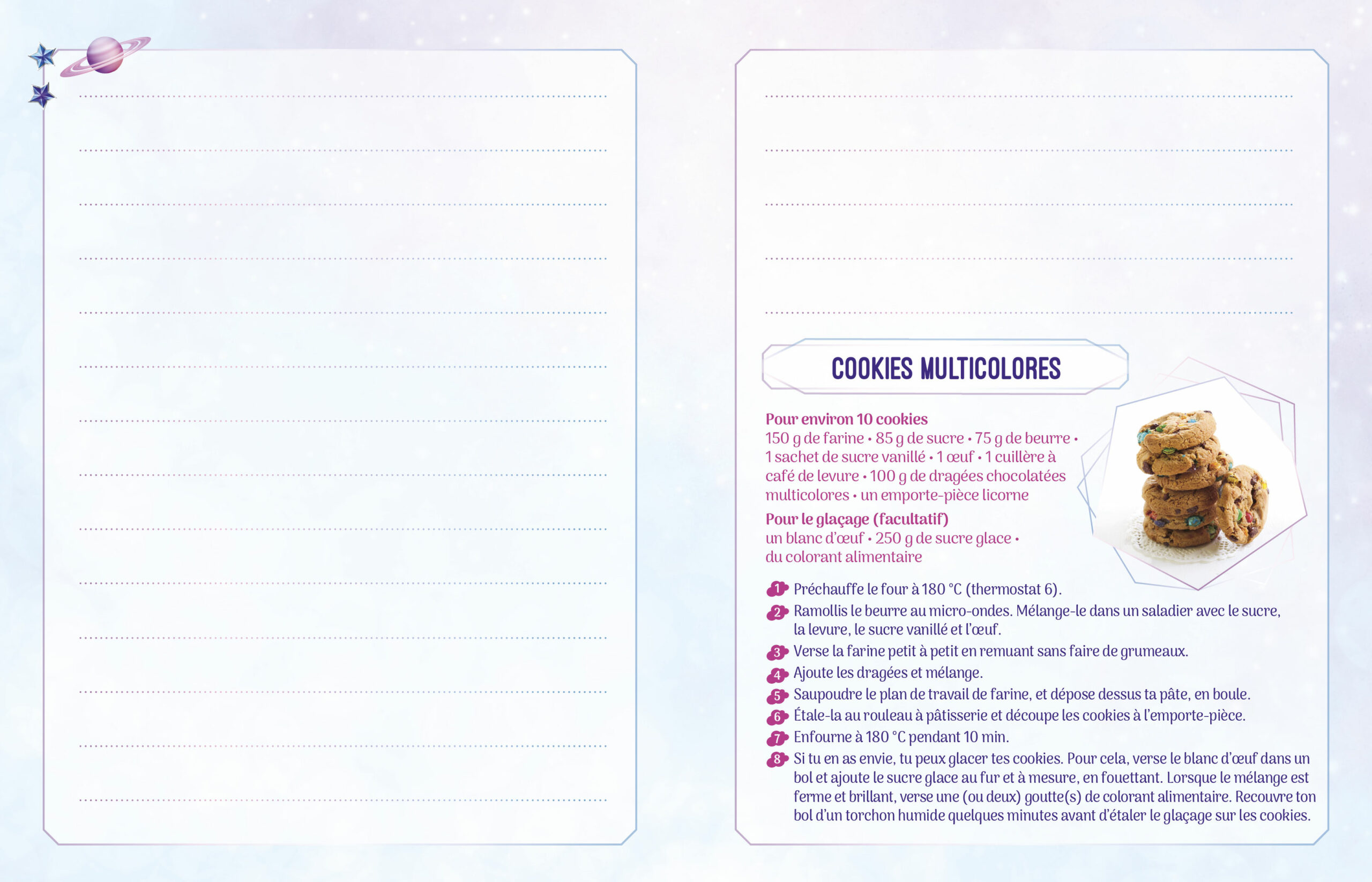 De jolies pages pour confier ses secrets et raconter ses journées, des espaces pour coller des photos ou dessiner les instants que l'on souhaite garder en mémoire, des petits coloriages et jeux pour se détendre, des fiches "caractère" pour apprendre à se connaitre soi-même et lister ses envies, et une page pour apprendre à écrire avec le code secret des licornes.