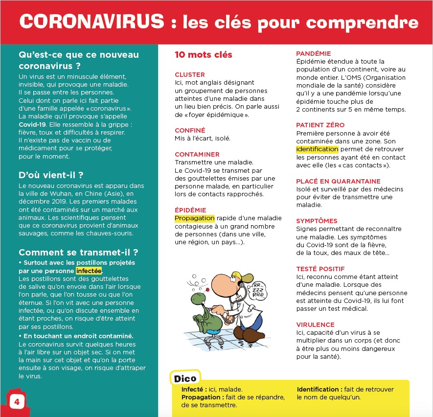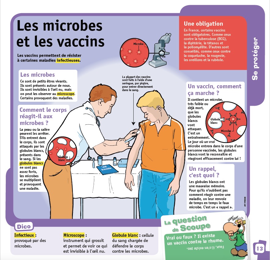 La collection dont les contenus sont issus du Petit Quotidien et de Mon Quotidien ! Ça veut dire quoi « être en bonne santé » ? Virus, bactérie, quelles différences ? Que sait-on de la Covid-19 ? Les vaccins, les médicaments, comment ça fonctionne ? Depuis la pandémie de Covid-19, la santé est au coeur de nos préoccupations. Chaque jour, il nous faut respecter des gestes pour ne pas contracter ce virus ou contaminer notre entourage. Et pourtant, à chaque instant, notre corps se défend efficacement contre des microbes dangereux et garde ceux qui sont bons pour lui. Ce livre vous accompagnera pour donner des repères à votre enfant sur sa santé, son système immunitaire et sur certaines maladies et leurs traitements. À lire à votre enfant… ou à laisser entre les mains de votre ado.