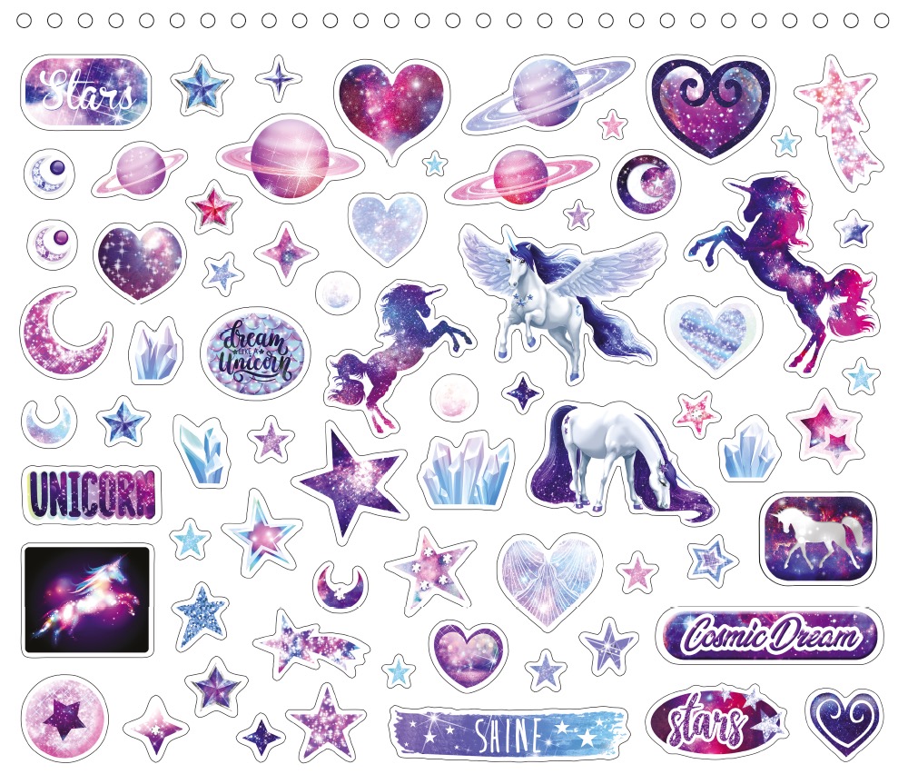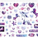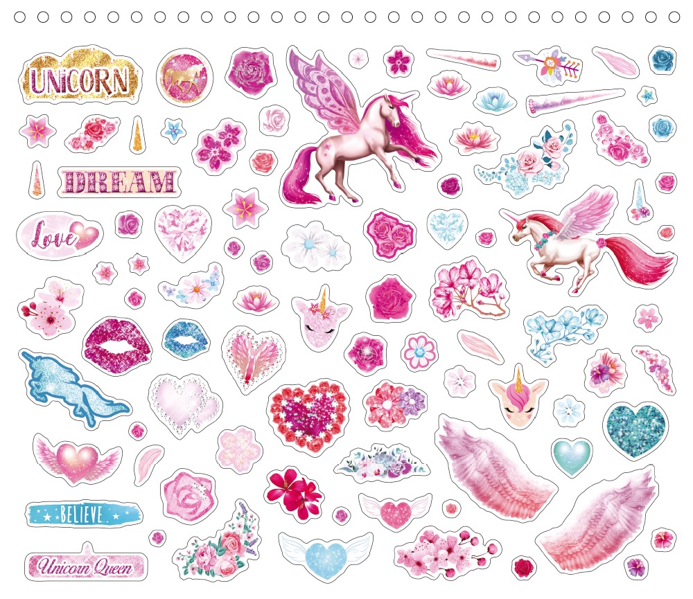 Réalise tes plus belles créations de licornes ! Colorie des licornes, motifs et arabesques ; « sticke » selon tes envies et crée tes pages portraits. Tu peux même donner des noms à tes licornes préférées. Ce carnet contient : – 8 pages de modèles pour t’inspirer ; – 12 vignettes portraits ; – 48 pages à décorer ; – 340 stickers, dont 90 avec effet brillant.