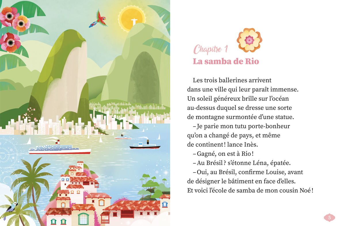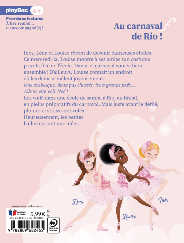 Les voilà dans une école de samba à Rio, au Brésil, en pleins préparatifs du carnaval. Mais juste avant le défilé, plumes et strass sont volés ! Heureusement, les petites ballerines ont une idée…
