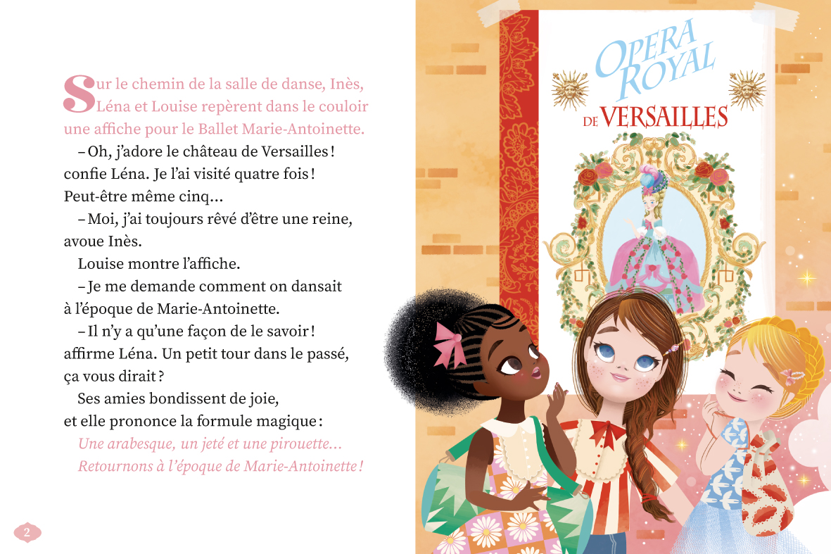 Ce mercredi-là, dans le couloir qui mène à la salle de danse, elles découvrent une affiche annonçant le « Ballet de Marie- Antoinette ». Louise aimerait savoir comment on dansait au temps des rois et des reines.