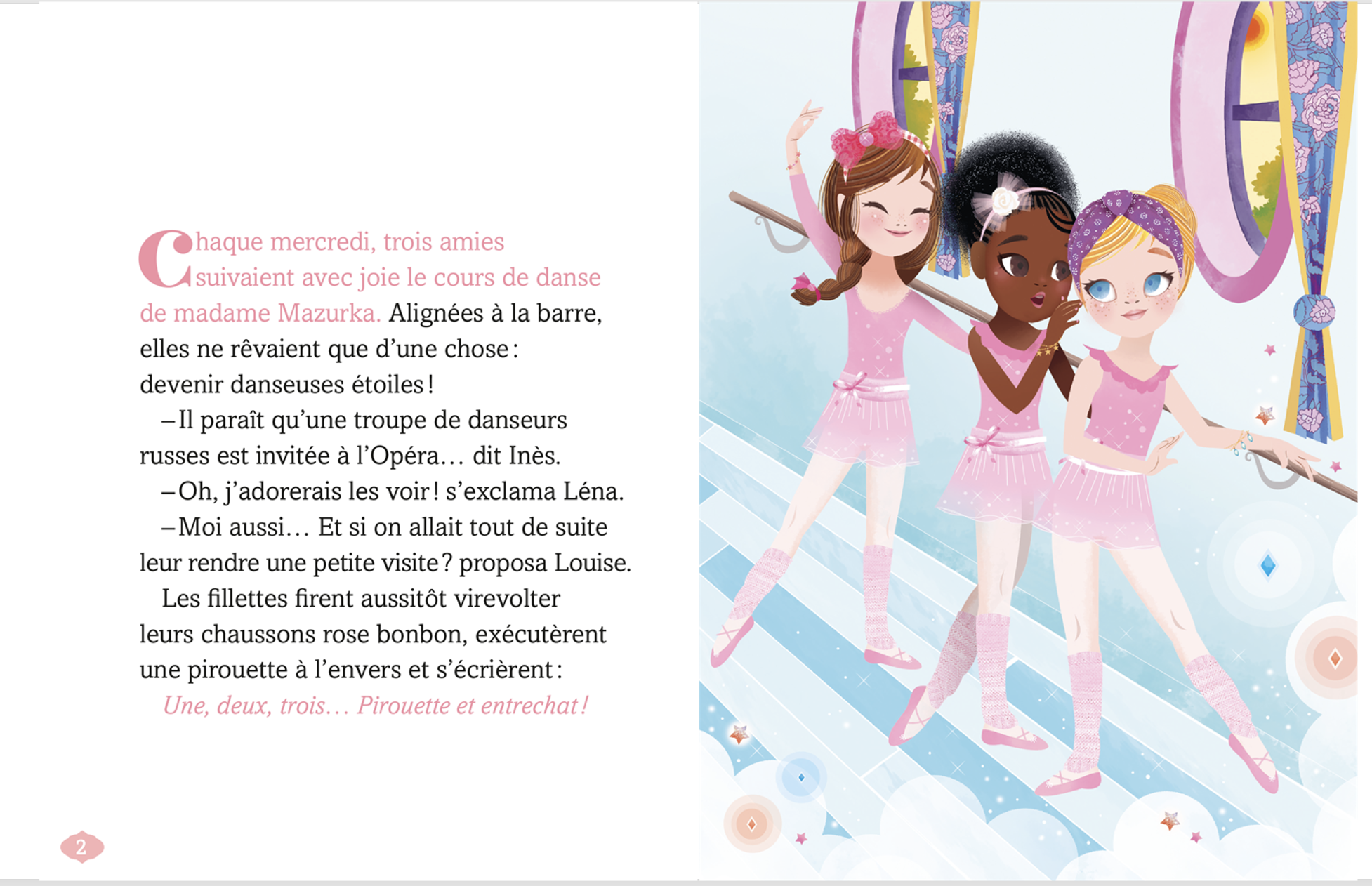 Ce mercredi-là, elles apprennent qu’une troupe d’artistes russes est invitée à l’Opéra… Alors Une, deux, trois… Pirouette et entrechat ! elles vont assister aux répétitions depuis les coulisses. Quand elles s’aperçoivent que Natacha, la belle étoile, ne danse pas comme les autres ballerines, elles décident de mener l’enquête !