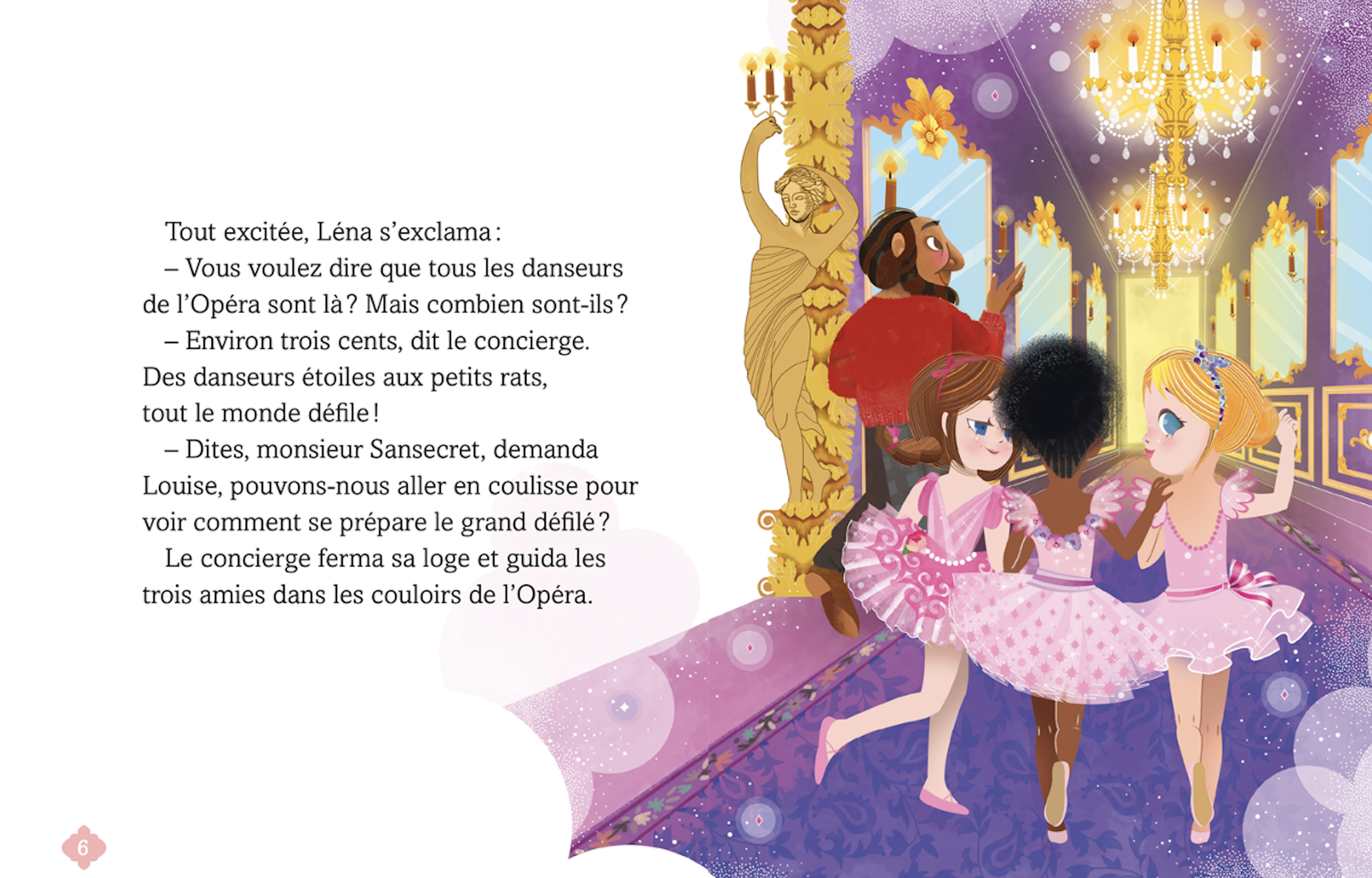 Mais ce mercredi, leur professeure est absente et elles se retrouvent dans le cours des « grandes ». Les petites danseuses ont un peu peur… Vite, à l’Opéra, pour se changer les idées et pour trouver la réponse à leur grande question : que font donc les ballerines, quand elles ont le trac ?