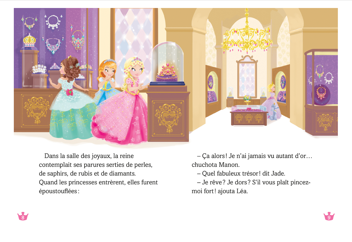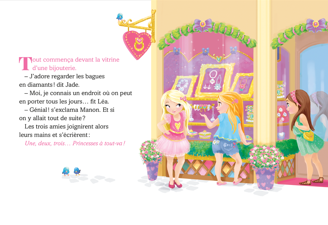 Jade, Léa et Manon rêvent d'une bague en diamant… Où pourraient-elles en trouver une si ce n'est au royaume des princesses ? Mais lorsque la reine leur montre sa merveilleuse collection de bijoux, elles découvrent qu'une bague magique a disparu. Y aurait-il un voleur au château ? Les princesses mènent l'enquête…